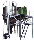 概述: 噴霧干燥是液體工藝成形和干燥工業(yè)中廣泛應(yīng)用的工藝。適用于從溶液、乳液、懸浮液和可塑性糊狀液體原料中生成粉狀、顆粒狀或塊狀固體產(chǎn)品。因此,當(dāng)成品的顆粒大小分布、殘留水份含量、堆積密度和顆粒形狀必須符合精確的標(biāo)準(zhǔn)時(shí)。噴霧干燥是一道合適的工藝。 工作原理: 空氣經(jīng)過(guò)濾和加熱,進(jìn)入干燥器頂部空氣分配器,熱空氣呈螺旋狀均勻地進(jìn)入干燥室。料液經(jīng)塔體頂部的高速離心霧化器,(旋轉(zhuǎn))噴霧成細(xì)微的霧狀液珠,與熱空氣并流接觸在短的時(shí)間內(nèi)可干燥為成品。成品連續(xù)地由干燥塔底部和旋風(fēng)分離器中輸出,廢氣由風(fēng)機(jī)排空。 特點(diǎn): ★ 干燥速度快,料液經(jīng)霧化后表面積大大增加,在熱風(fēng)氣流中,瞬間就可蒸發(fā)95%-98%的水份,完成干燥時(shí)間僅需數(shù)秒,特別適用于熱敏性物料的干燥。 ★ 產(chǎn)品具有良好的均勻度、流動(dòng)性和溶解性,產(chǎn)品純度高,質(zhì)量好。 ★ 生產(chǎn)過(guò)程簡(jiǎn)化,操作控制方便。對(duì)于含濕量40—60%(特殊物料可達(dá)90%)的液體能一次干燥成粉粒產(chǎn)品,干燥后不需粉碎和篩選,減少生產(chǎn)工序,提高產(chǎn)品純度。對(duì)產(chǎn)品粒徑,松密度,水份,在一定范圍內(nèi)可通過(guò)改變操作條件進(jìn)行調(diào)整,控制和管理都方便。